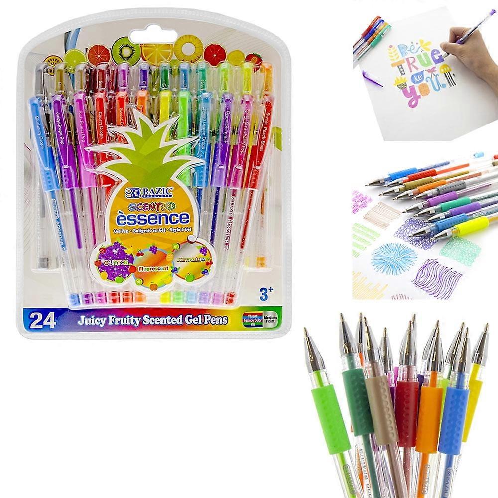 24 PC Scented Gel Pens Set Fruit Scent Glitter Pen School Drawing Coloring Book