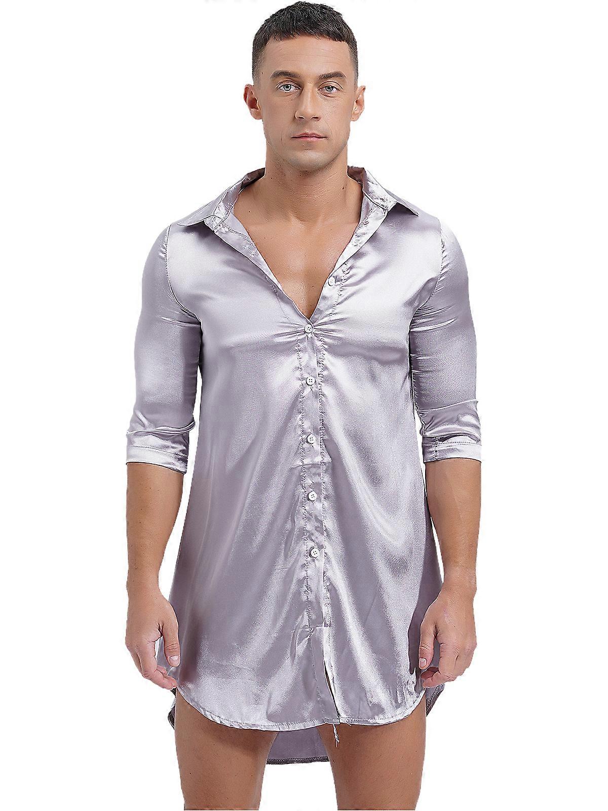 Mens Satin Silk Nightshirt Sexy Sleepwear Casual Sleep Shirt Half Sleeve Pajamas