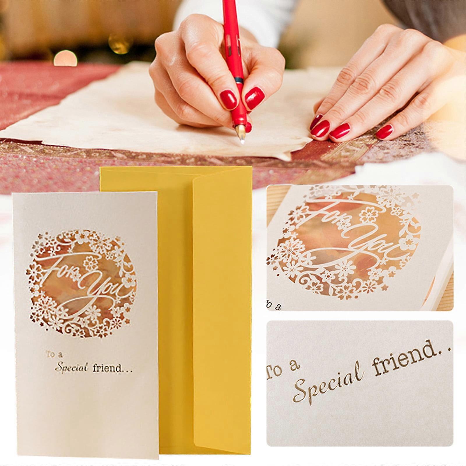 Elegant Kraft Christmas Card with Bronzing, Hollow Carving & Pearl Blessing, Compatible with Holiday, Birthday, Thank You, Gift for Grandma, Family