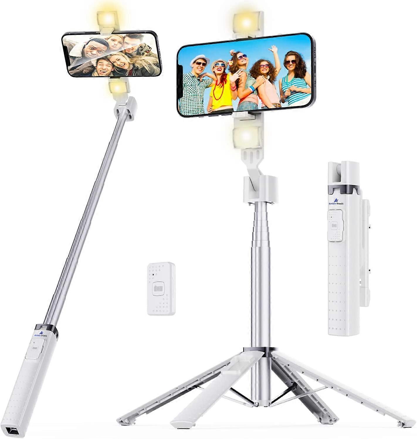 About this item ⭐ LIGHTED SELFIE STICK QUADRAPOD (PATENTED) - First On Market Lighted Selfie Stick Quadrapod Combo. Has 4 Legs Compared To Old Style Selfie Sticks. 4 Leg Base Makes This Selfie Stick Incredibly More Stable. Plus, Onboard Light On This Selfie Stick. Weighs Only 7 Ounces. Extends From 7.6" to 40”. ⭐ ONBOARD FILL LIGHT ON SELFIE STICK - No Need For An External Selfie Light, Onboard Quadrapod Light Has 12 Bright ’S, Perfect Light For Vloggers, Livestream, Tiktok. Easy Convenient Charging by USB Cable. ⭐UPGRADED DETACHABLE BLUETOOTH REMOTE - With The Most Advanced Chips, Fully Compatible With iPhone and Android Devices, Easy To Pair. Remote is Removable. From Stick For More Photo Flexibility. ⭐MULTI-ANGLE ROTATION FOR CREATIVE SHOOTING - Choose Horizontal Or Vertical Camera Modes With 270° Neck And 360° Phone Holder Rotation. Allows For The Best Shooting Angles And Capturing Beautiful Photos. ⭐A+ CUSTOMER SERVICE - Ambertronix Is Committed To Designing High-Quality And Cutting Edge Products For Our Customers. If You Have Any Questions, Please Feel Free To Contact Us, We Are Here To Serve You.