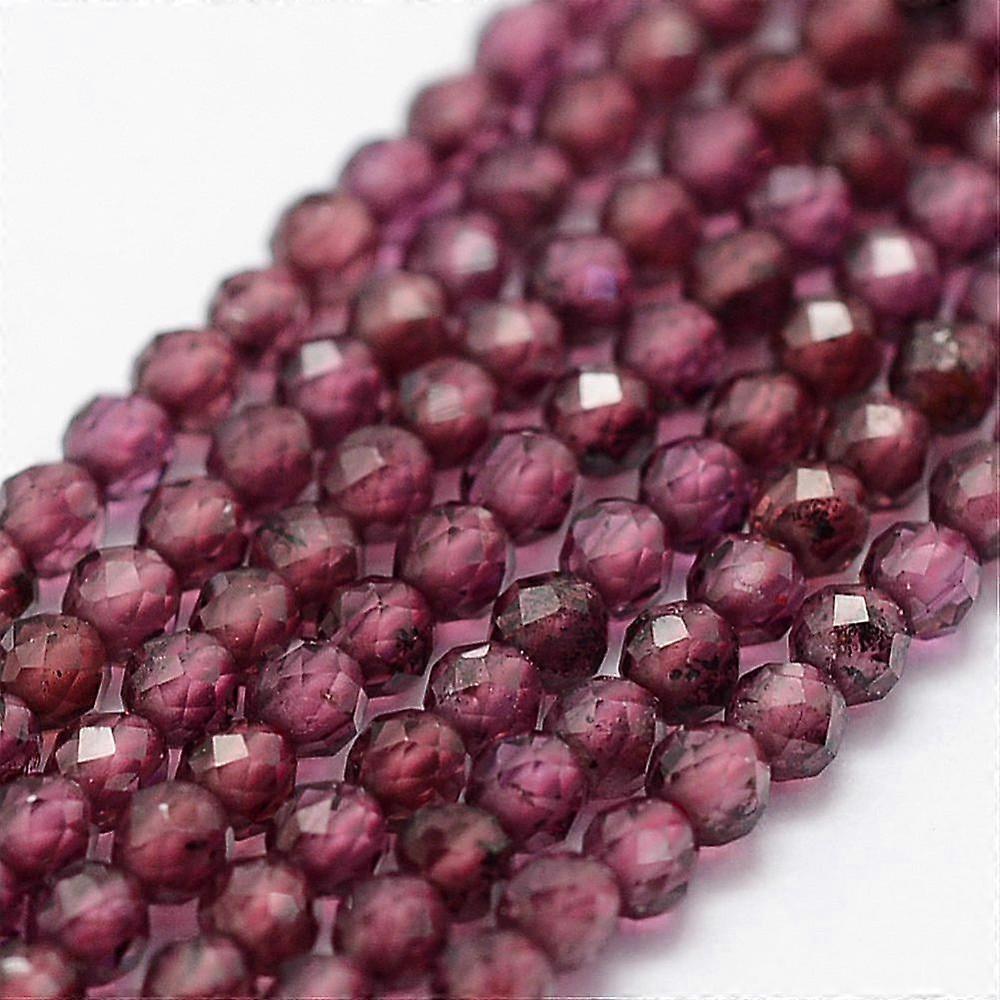 5Strand Natural Garnet Beads Strands Faceted Round Purple 2mm Hole: 0.5mm 175pcs/strand 14.9 inch(38cm)