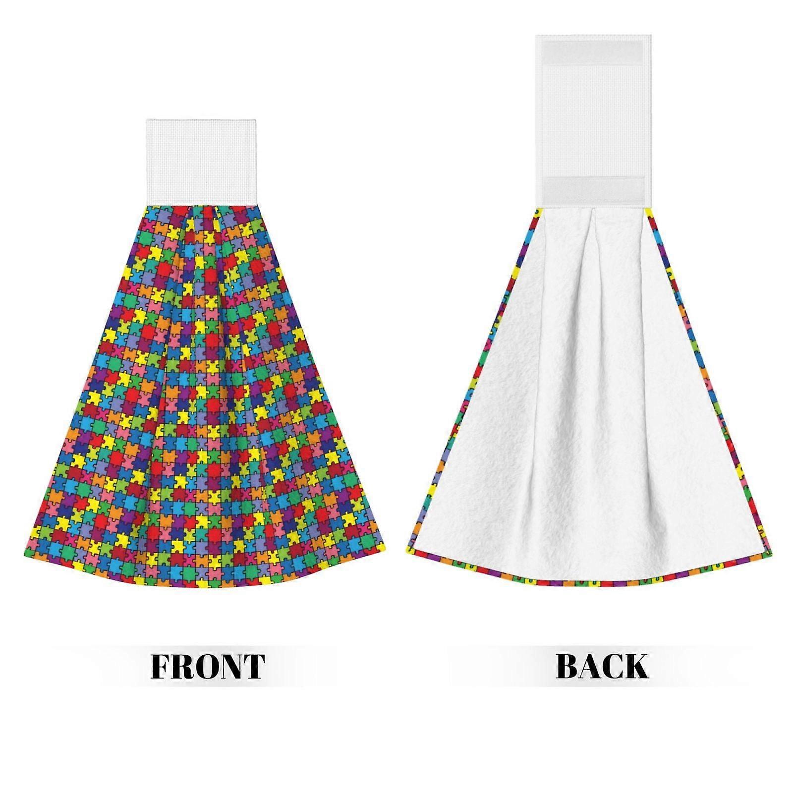Colorful Puzzle Piece Autism Awareness Hand Towels With Velcro Loop, Coral Velvet Hand Wipes For Kitchen & Bathroom