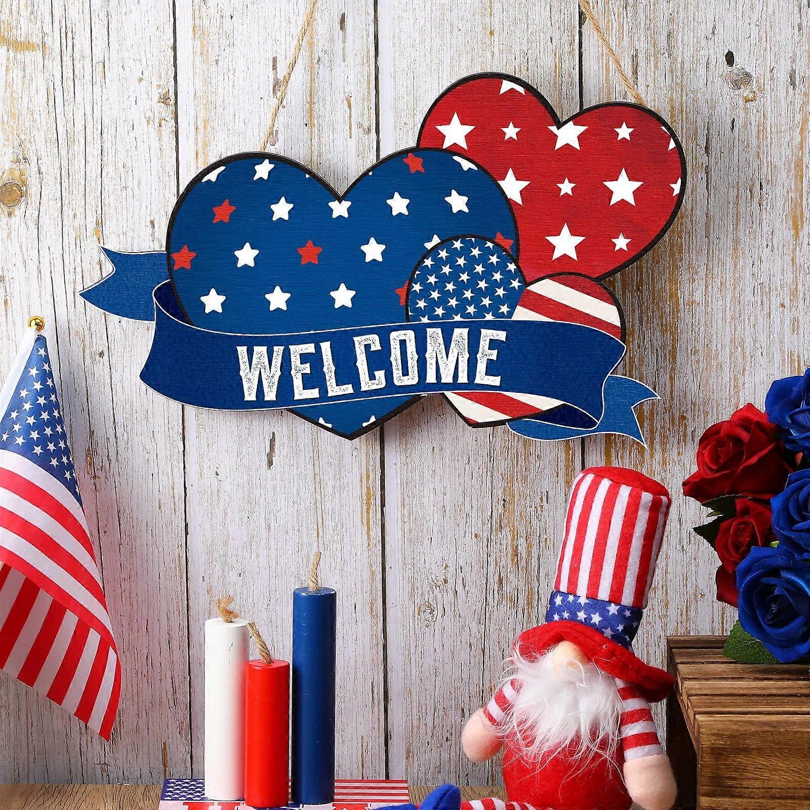 Patriotic Wall Decor: Red, White & Blue Wreath with American Flag - Compatible with Independence & Memorial Day Door Porch Decor