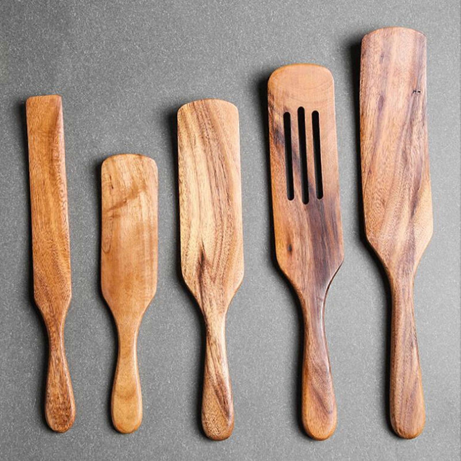 Dengjunhu 1pc Natural Acacia Wooden Spurtle - Heat Resistant Spatula for Non Stick Cookware - Mixing, Stirring, Serving