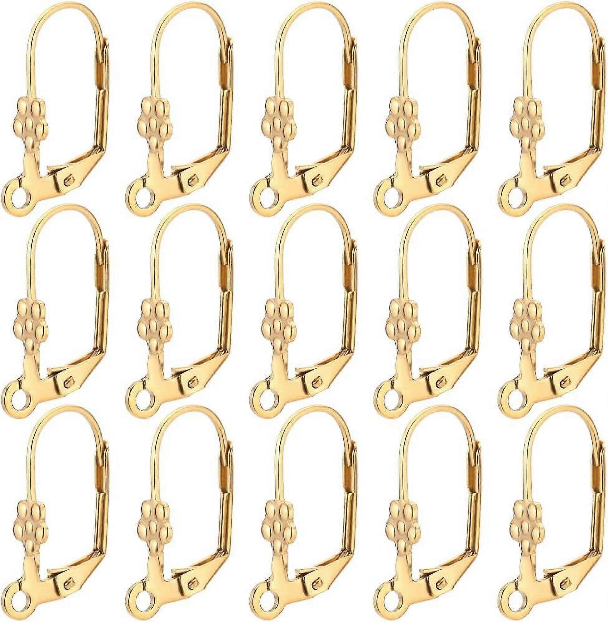 1 Box 50Pcs Stainless Steel Golden Leverback Ear Hooks with Open Loop, Hole: 1.5mm, for Earring Jewelry Making