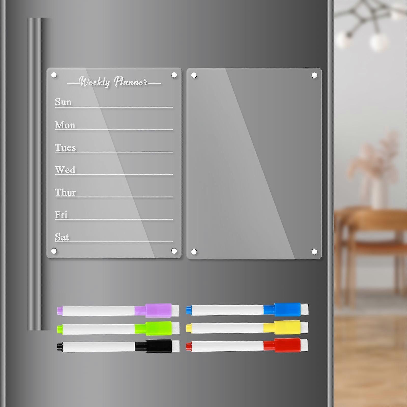 NewSoul Clear Acrylic Magnetic Dry Erase Board, Monthly & Weekly Planner, 6 Markers, 11.7x8.3inch for Refrigerator Organization