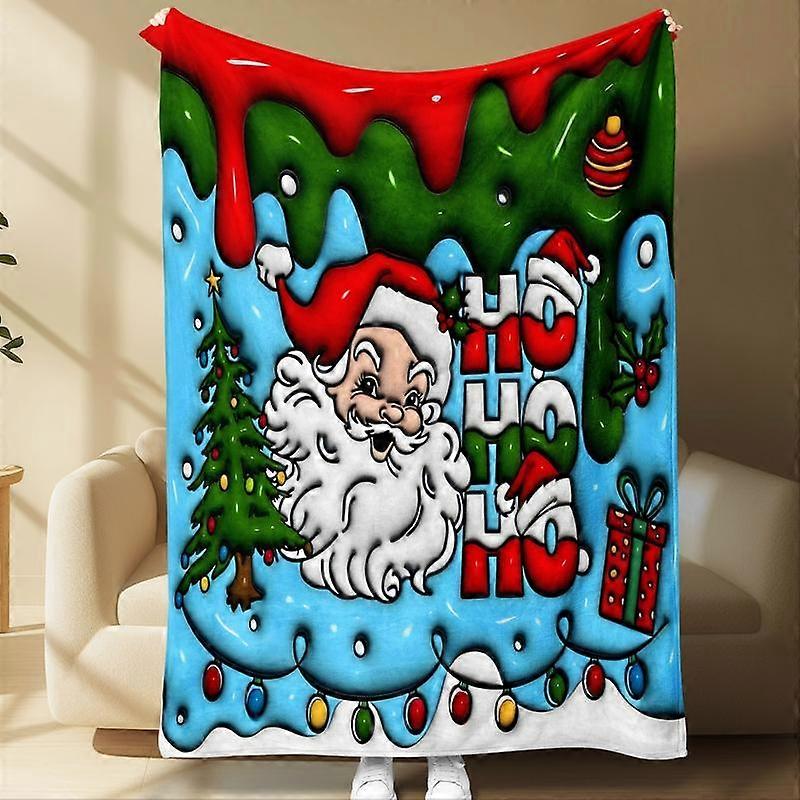 Santa Claus Christmas Lights Throw Blanket, Festive Holiday Cartoon Cozy Fleece Blanket, Warm Blanket for Christmas Decor