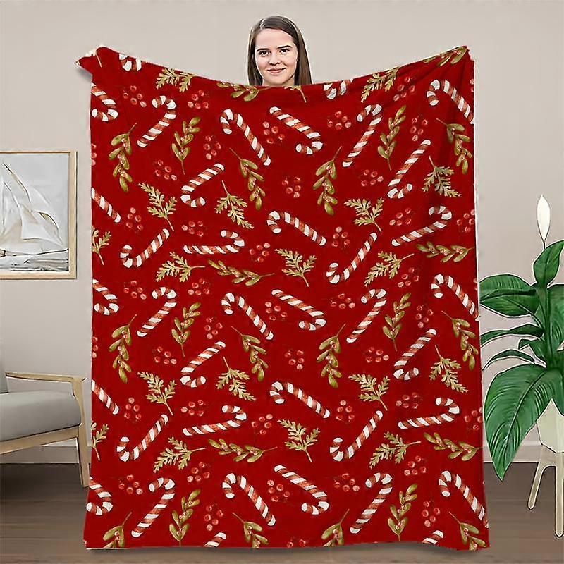Christmas Candy Cane Throw Blanket, Festive Holiday Fleece Blanket, Cozy Winter Blanket for Home, Sofa, and Gift