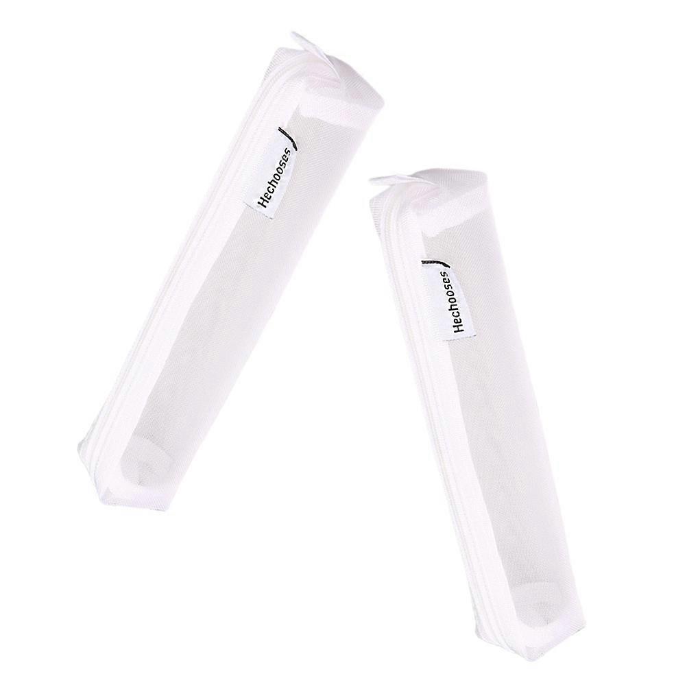 Transparent Mesh Pencil Case Bag Stationery Pouch Nylon Solid Color Pencils Student Dedicated 2 Pcs White