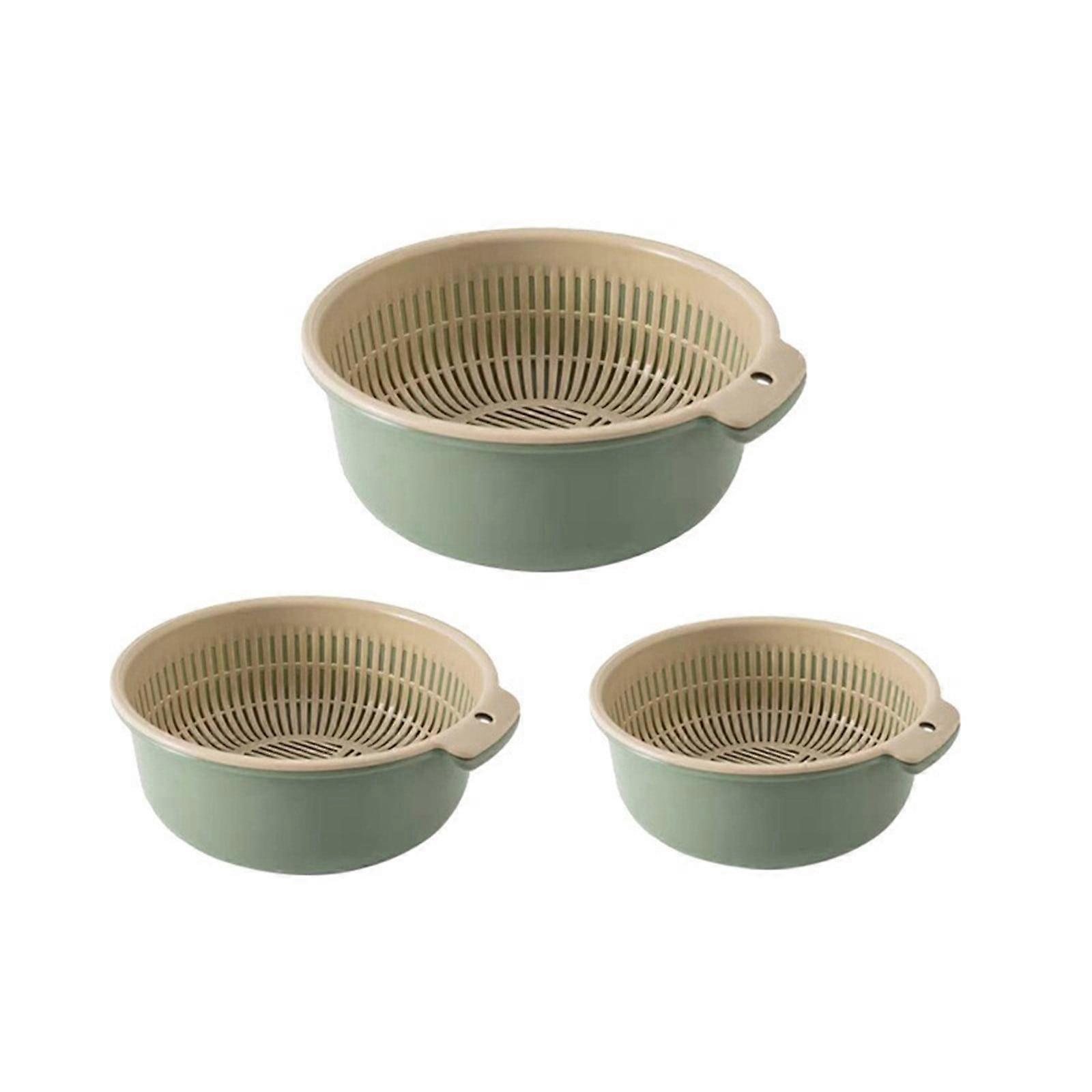 3 Set Vegetable Washing Basket, 2-in-1 Drain Colander Bowl, Fruit Cleaning Strainer with S,M,L Sizes (6PCS)