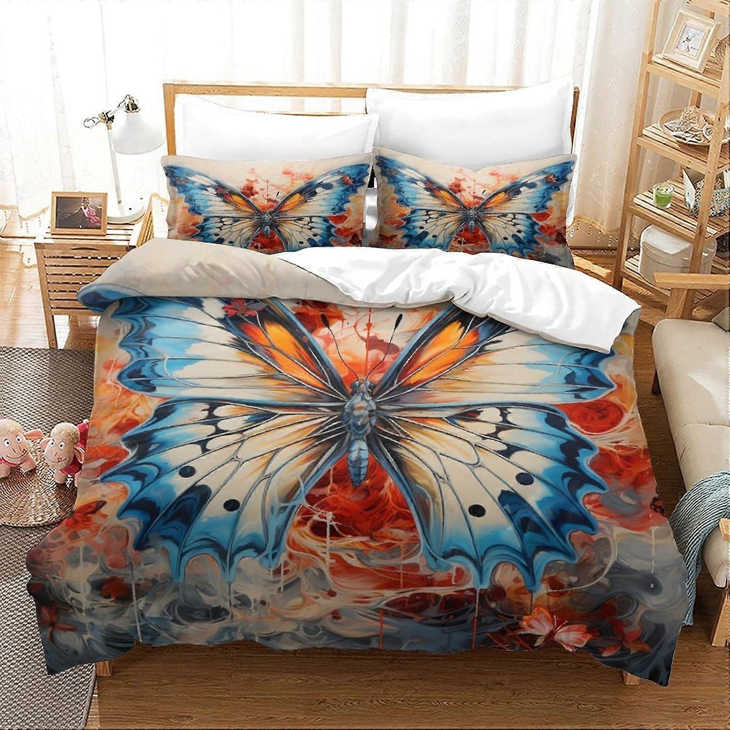 Butterfly 3D Printed Duvet Cover Set with Pillowcases, 3-Piece Microfiber Comforter Cover with Zipper Closure for Kids & Adults