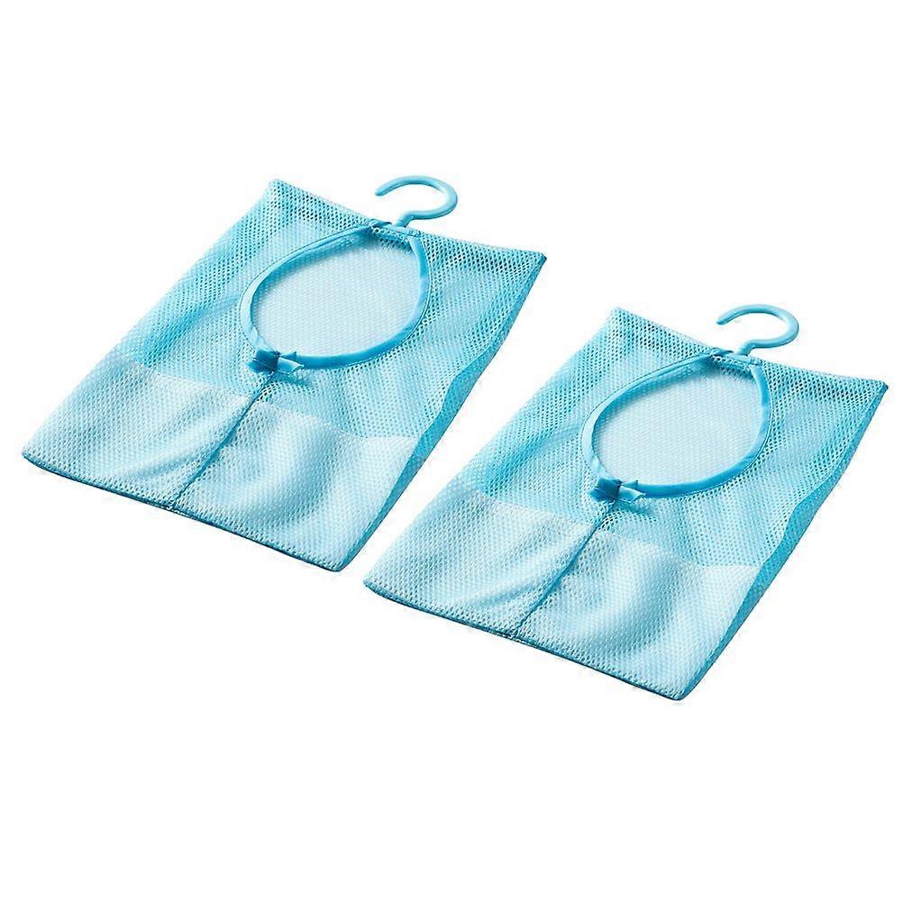 2 Pcs Hanging Multifunctional Storage Mesh Bag With Hanger Clothespin Collection Pouch Closet Organizer For Kitchen Bathroom (Blue)