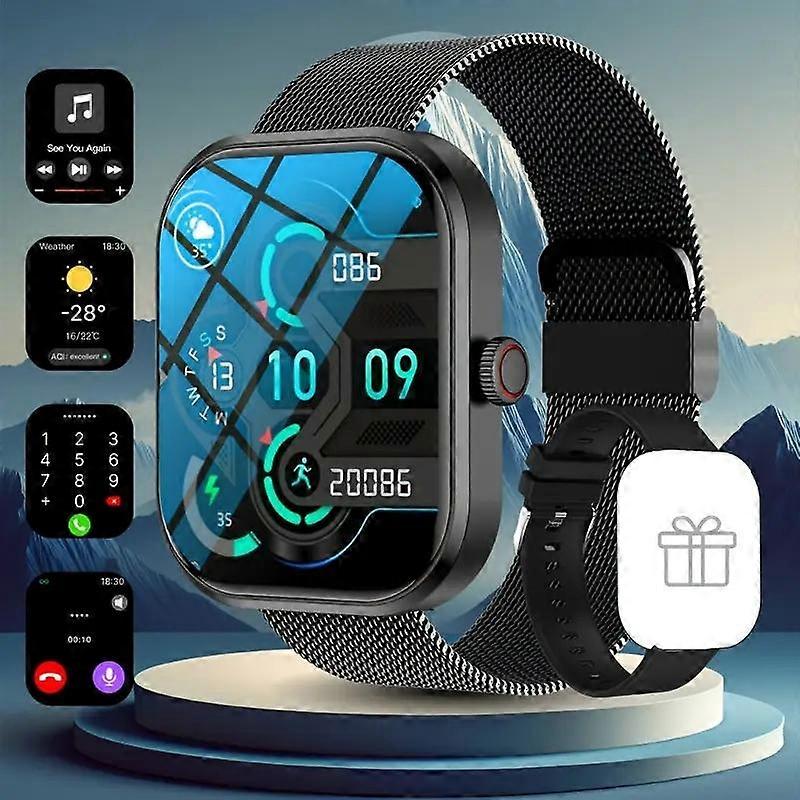 2.01-inch large screen unisex smartwatch, dual straps, call function, message alerts, sports features, camera control and music playback, we