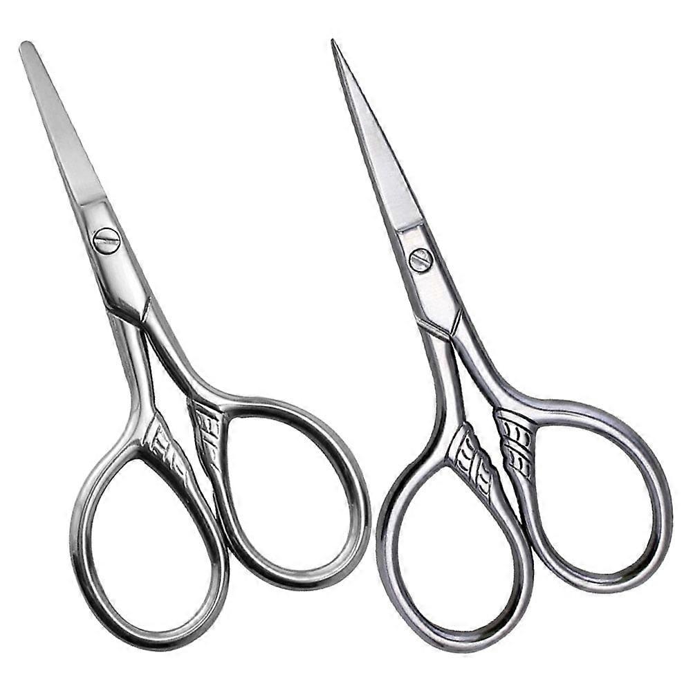 2Pcs Cosmetic Scissors Small Eyebrow Scissors Beard Trimming Tools Stainless Steel Grooming Scissors