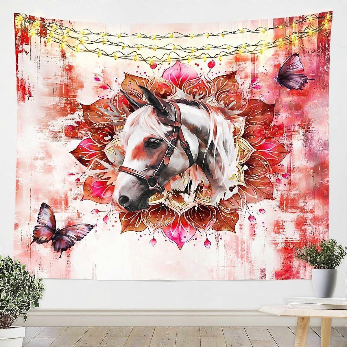 Farm Horse Wall Artwork for Teens Adults Safari Animal Print Wall DecorHippie Mandala Taptry for Bedroom Athetic Red Gradient Taptri, Boho Flower Flor