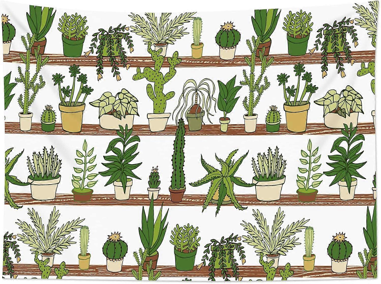 Cactus Taptry Tropical Dert Succulent Plants on Wood Shelf Wall Hanging Watercolor Botanical on White Taptrifor Bedroom Living Room Dorm Decor GU 0307