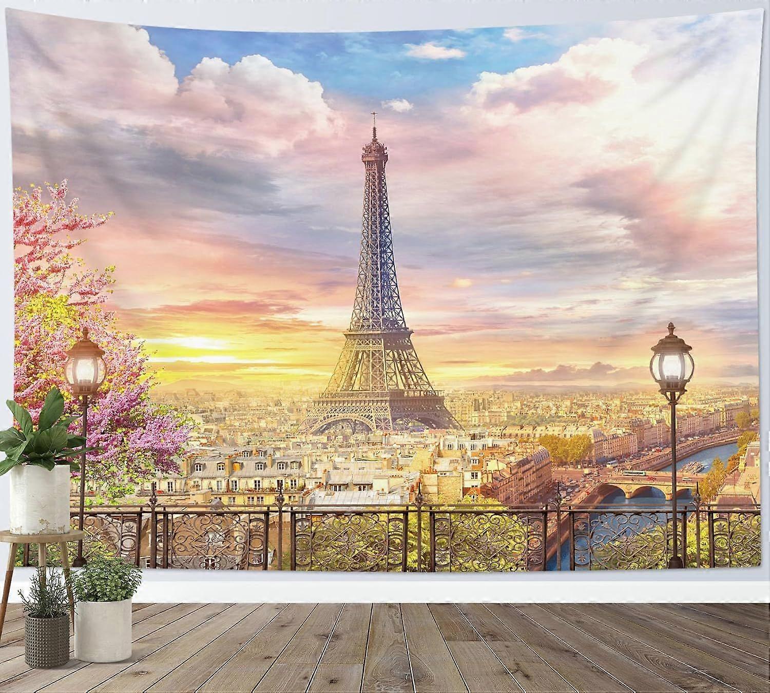 Eiffel Tower Taptry Spring Scenery of Romantic City Taptry Wall Hanging Paris Wall Art for Bedroom Living Room Dorm Party Decor GU 0265
