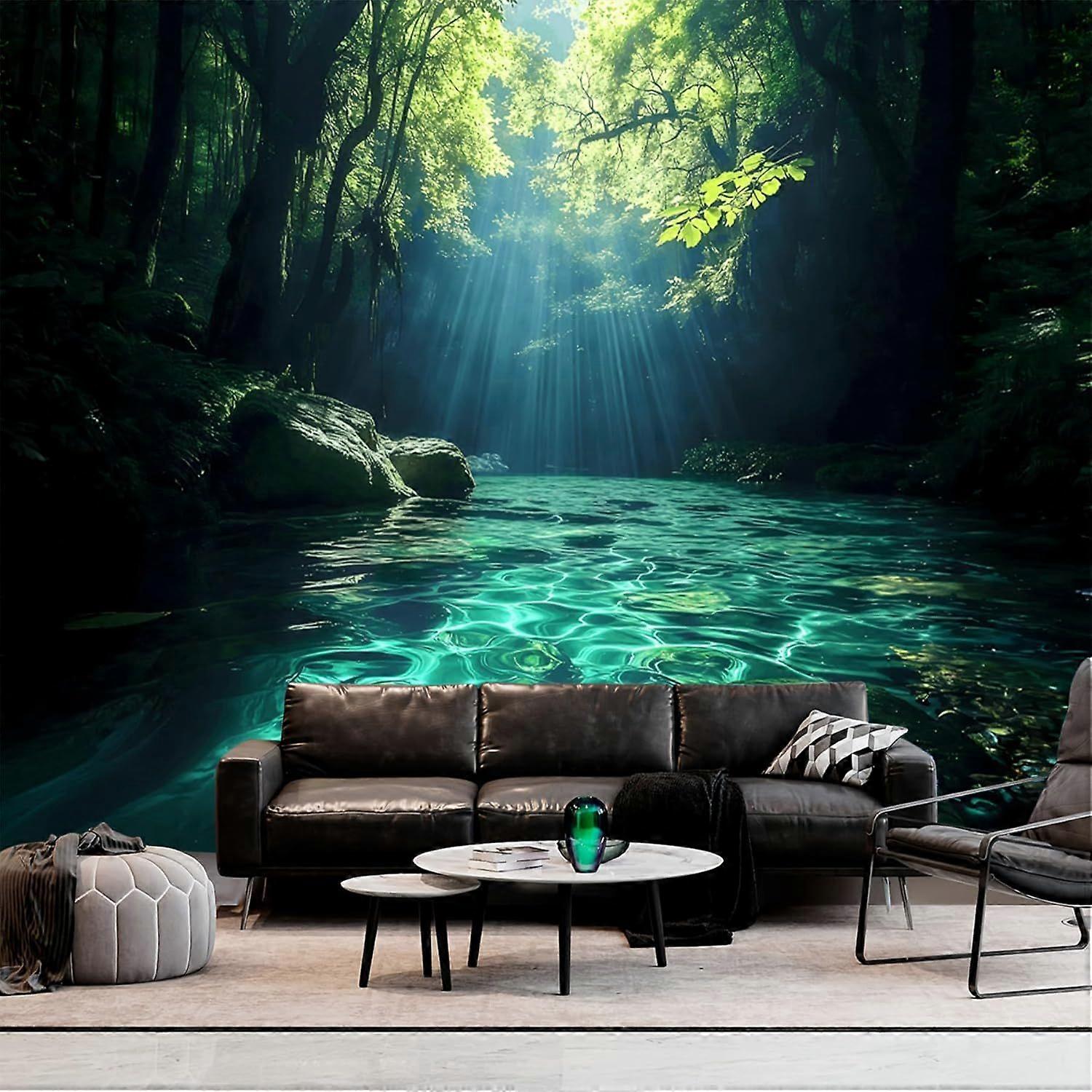 Nature Fort TaptryTree Sea Cave Wall Hanging, Stream Through Rainfort Landscape Wall Art for Bedroom Living room (Lake Unframed) GU 1136
