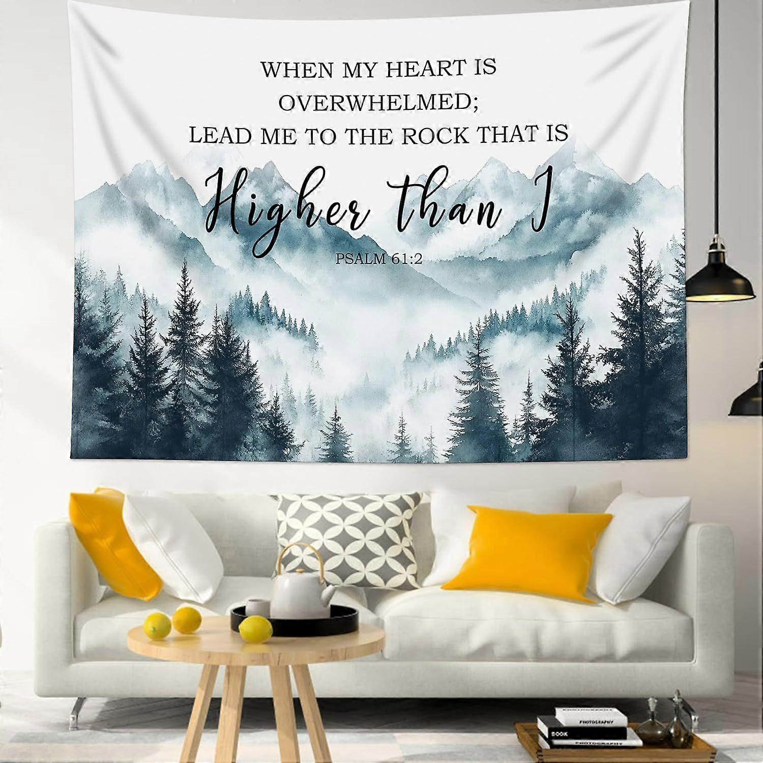 Mountain Fort Taptry Wall Hanging Watercolor Foggy Fort Tree in Nature Taptry for Bedroom Landscape Bible VersWall Decor for Living Room College Dorm