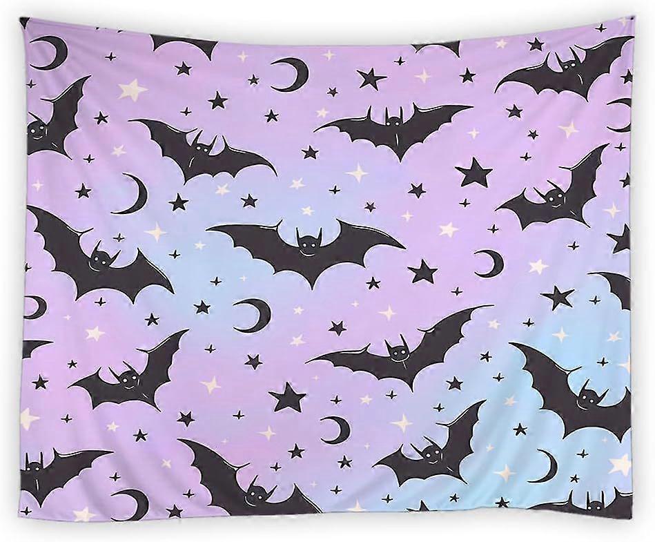 Halloween Bat Taptry Abstract Fantasy Horror Flying Bat Star Moon on Purple Blue Background Gothic Scary TaptriWall Hanging for Bedroom Living Room Do