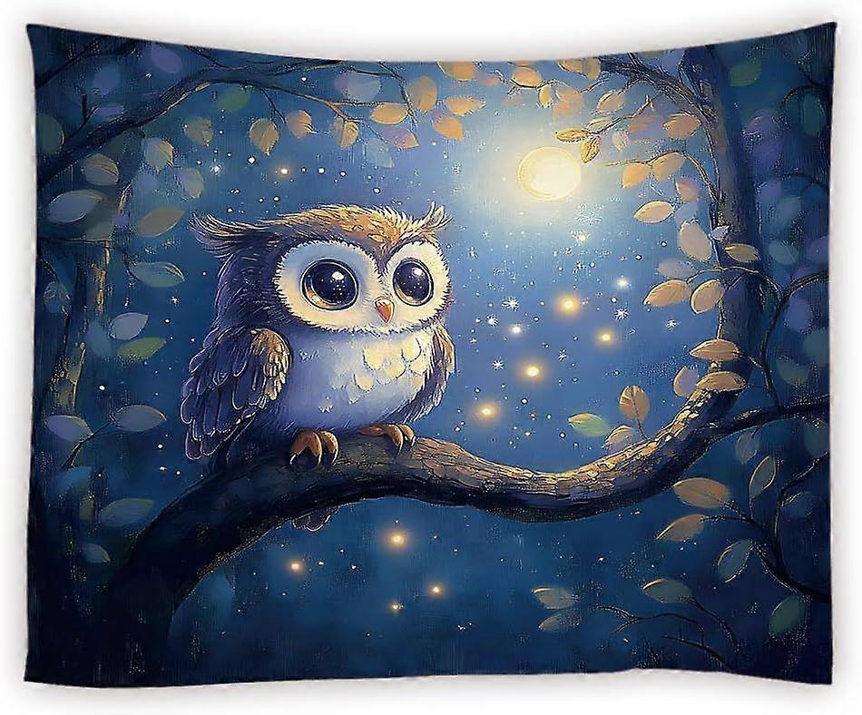 Owl Taptry Fantasy Bird on Tree Branch Full Moon Misty Fort LeavWonderland Cute Animal Watercolor Wildlife TaptriWall Hanging for Bedroom Living Room