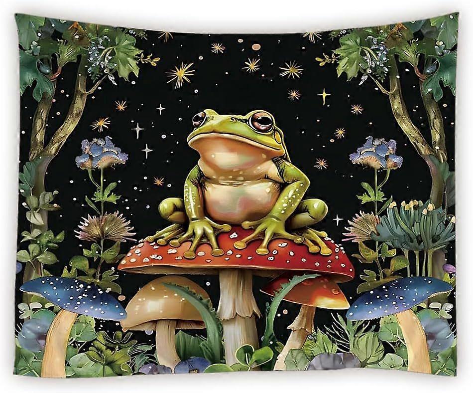 Funny Frog Mushroom Taptry Boho Night Starry Star Floral Sage Green LeavFort Botanical Plant Rustic TaptriWall Hanging for Bedroom Living Room Dorm Ba