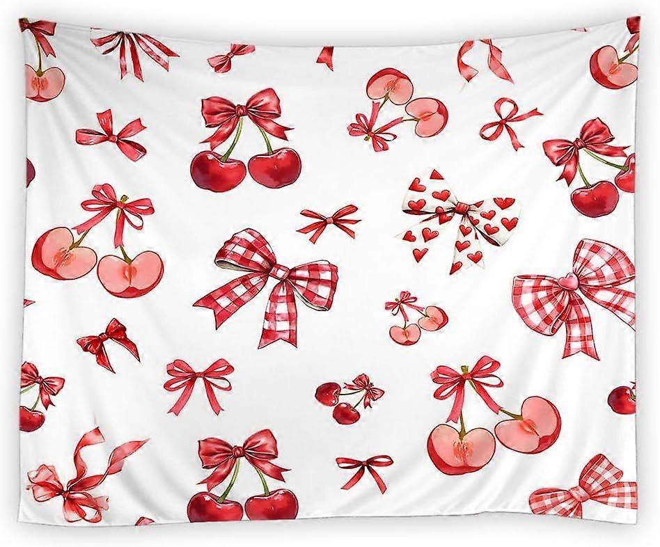 Red Bowknot Cherry Taptry Princs-Style Tropical Fruit Dreamy Bow-Tie Pattern Fashion Pretty Sweet Athetic TaptriWall Hanging for Bedroom Living Room D