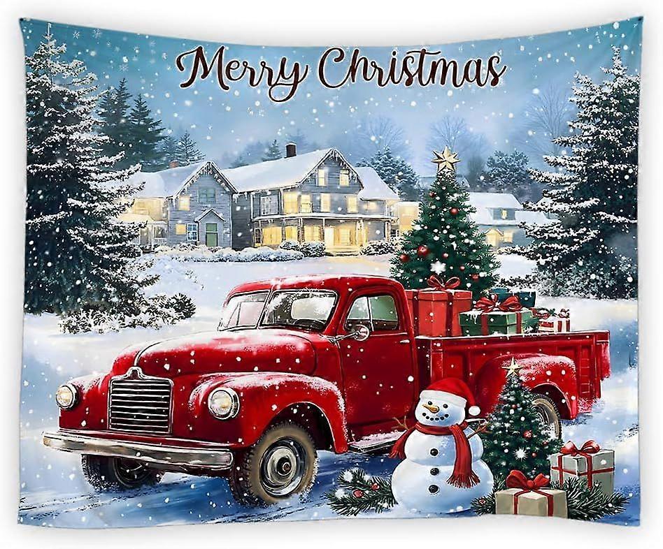 Merry Christmas Taptry Vintage Red Truck Snowman Xmas Pine Tree Star Snowflake Rustic Cabin Winter Scene Holiday TaptriWall Hanging for Bedroom Living