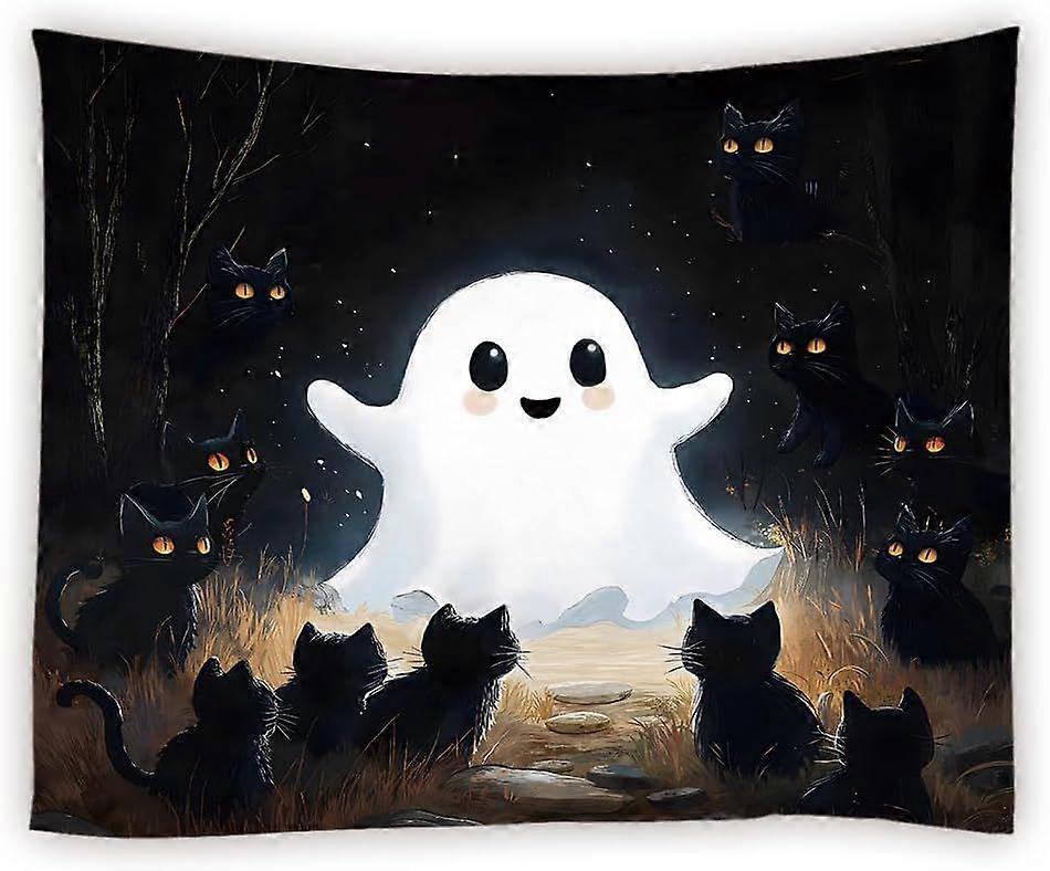 Funny Ghost Taptry Halloween Horror Black Cat Tree Misty Fort Gothic Scary Animal Watercolor TaptriWall Hanging for Bedroom Living Room Dorm Backgroun