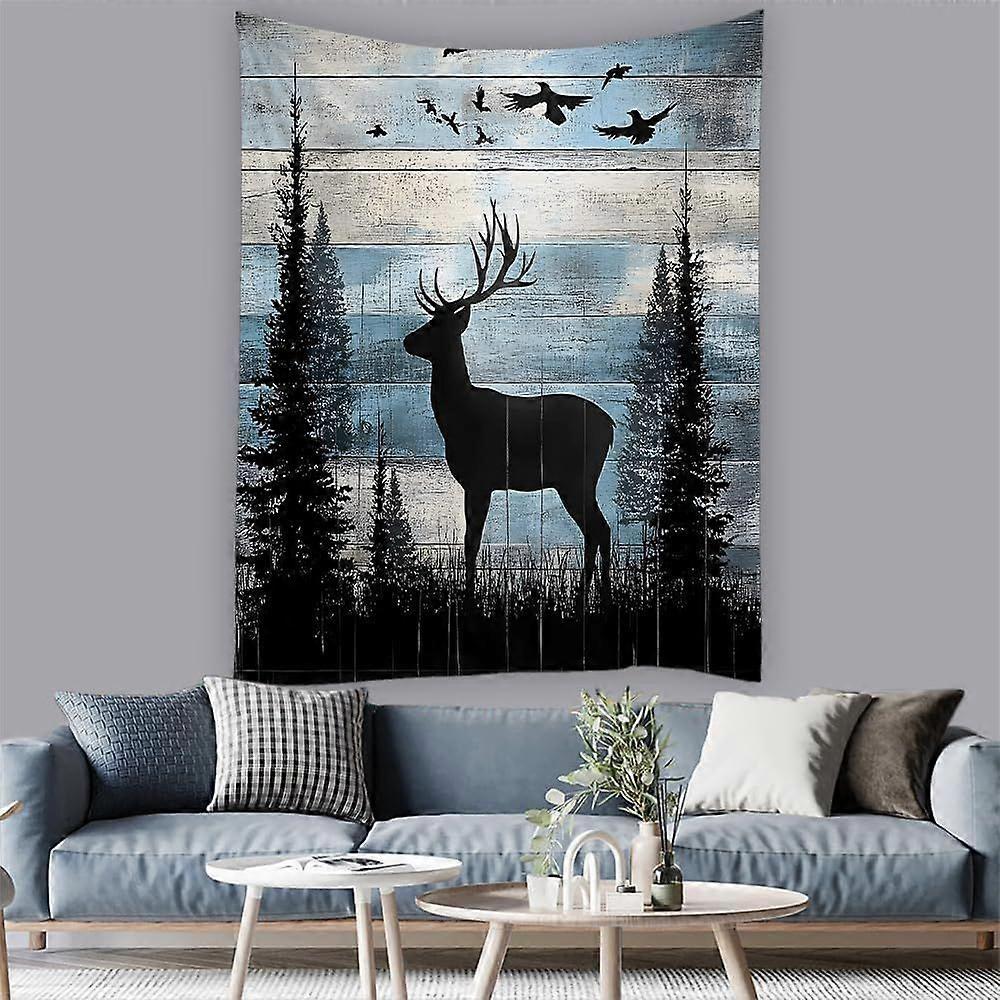 Rustic Cabin Taptry Retro Deer Fort Bird Farmhouse Wild Animal Country Hunting Camping Wooden Board TaptriWall Hanging for Bedroom Living Room Dorm Ba