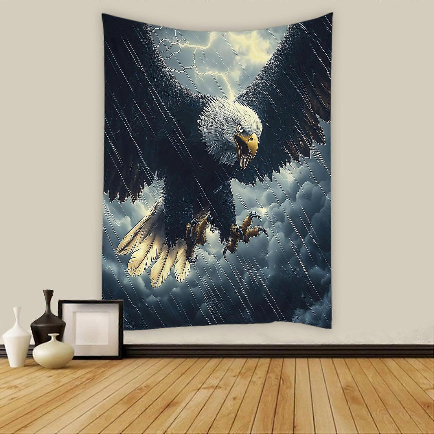 Eagle Taptry Flying Bird Rain Windstorm Grey Cloud Wild Animal Nature Scenery TaptriWall Hanging for Bedroom Living Room Dorm Background Cloth GU 0761