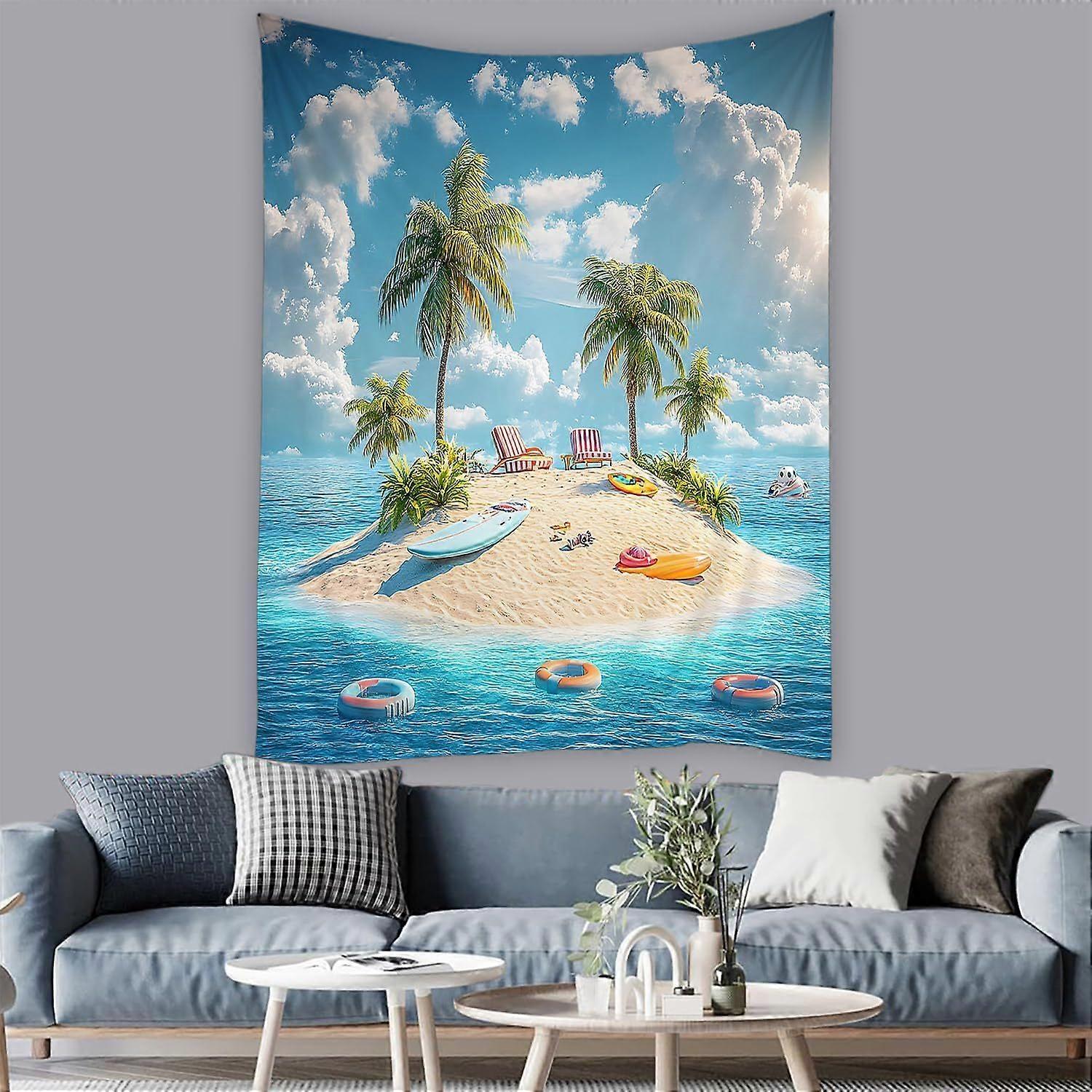 Ocean Beach Taptry Tropical Palm Tree LeavSurfboard Sea Wave Hawaiian Island Scenery Nature Landscape TaptriWall Hanging for Bedroom Living Room Dorm