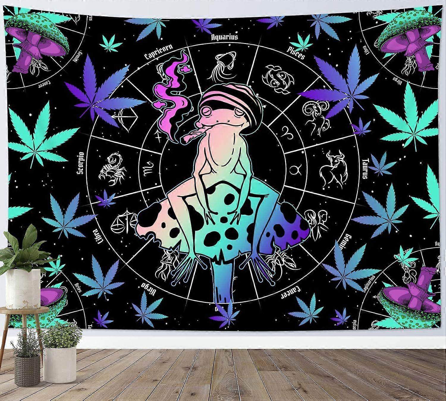 Trippy Weed Taptry, Black White Constellation Frog Smoking on MushRoom Funny Marijuana Wall Hanging for BedRoom Living Room Dorm GU 0922
