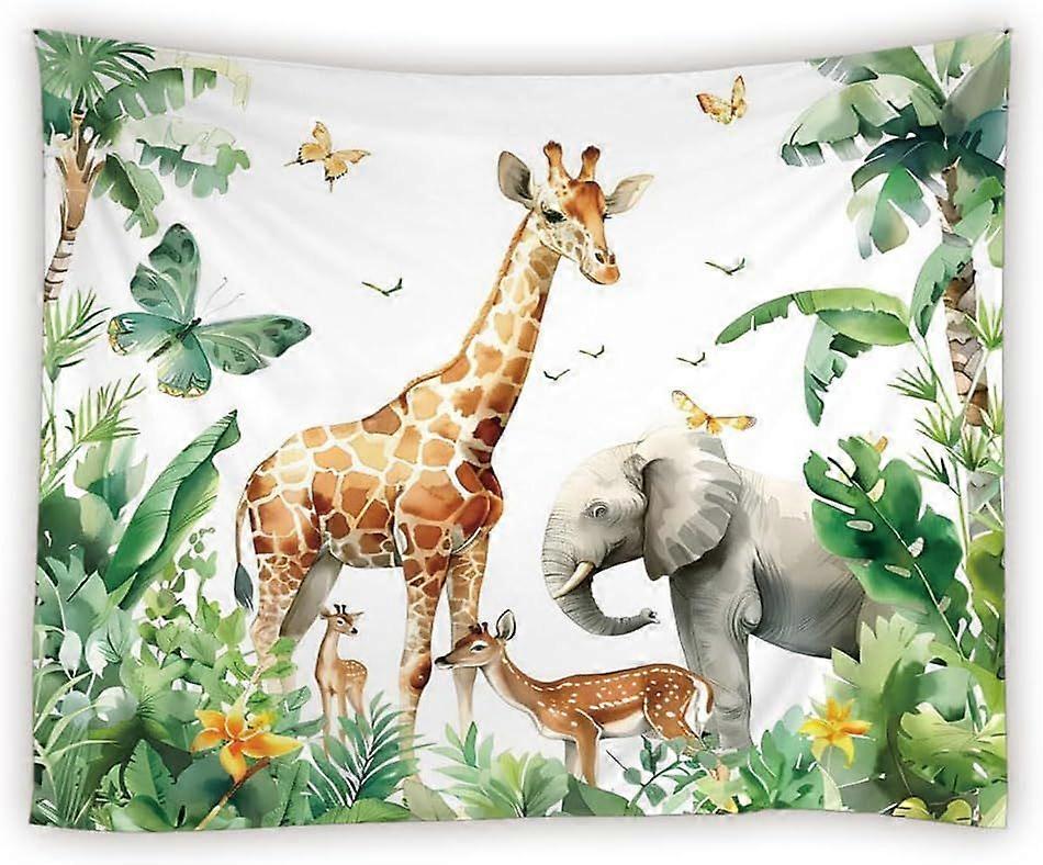 Rainfort Animals Taptry Watercolor Tropical Fort Elephant Giraffe Deer Butterfly Safari Zoo Plam LeavTree TaptriWall Hanging for Bedroom Living Room D