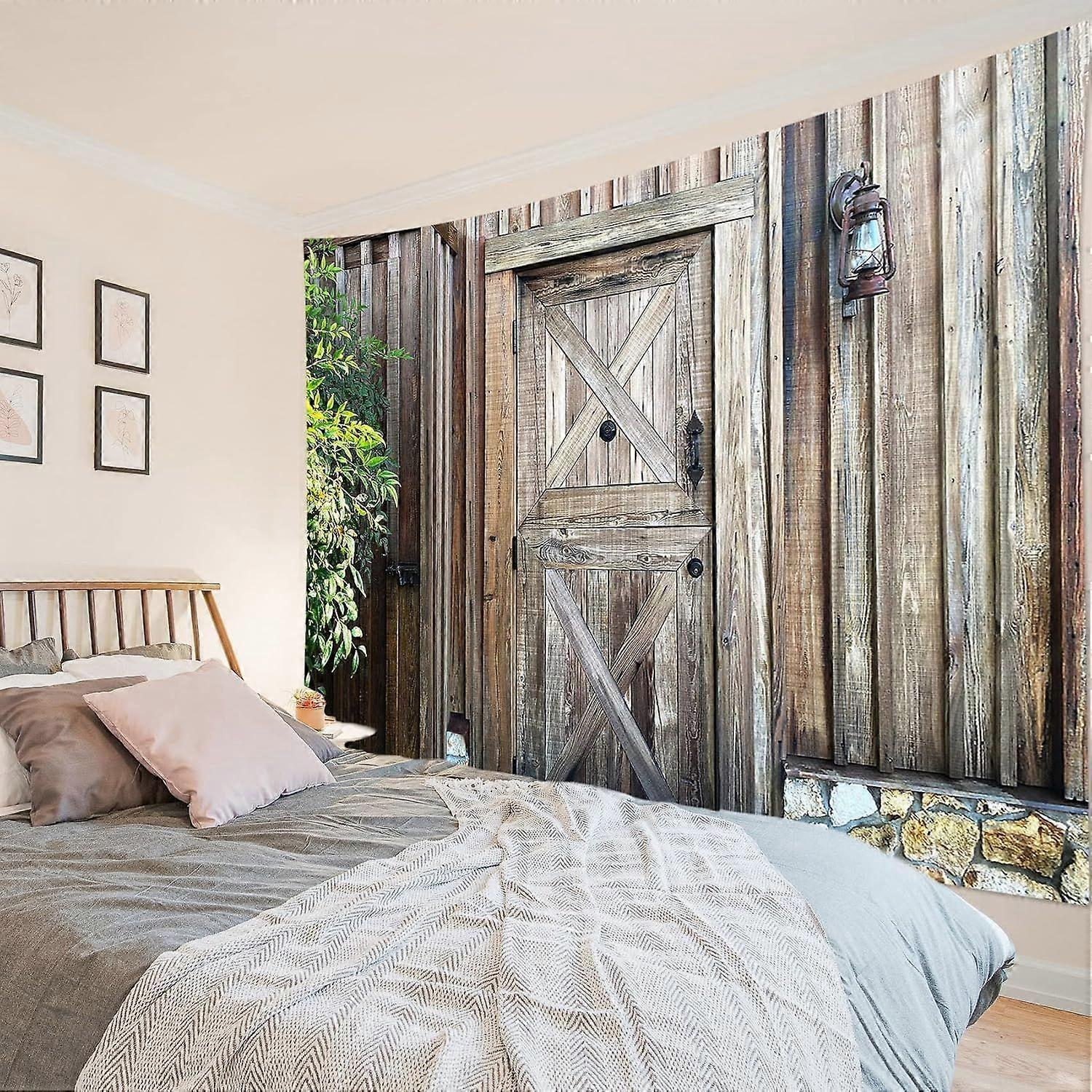 Rustic Barn Door Taptry Wall Hanging Grey Brown Wood Board Cabin TaptriVintage House Farmhouse Wall Taptry for Living Room Bedroom Dorm Country Wall D
