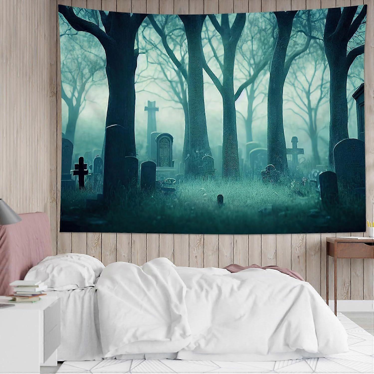 Spooky Halloween Cemetery Taptry Scary Tombstone with Dead TreFort Taptry Wall Hanging Horror Ghost Party Background Taptry for Bedroom Living Room Do