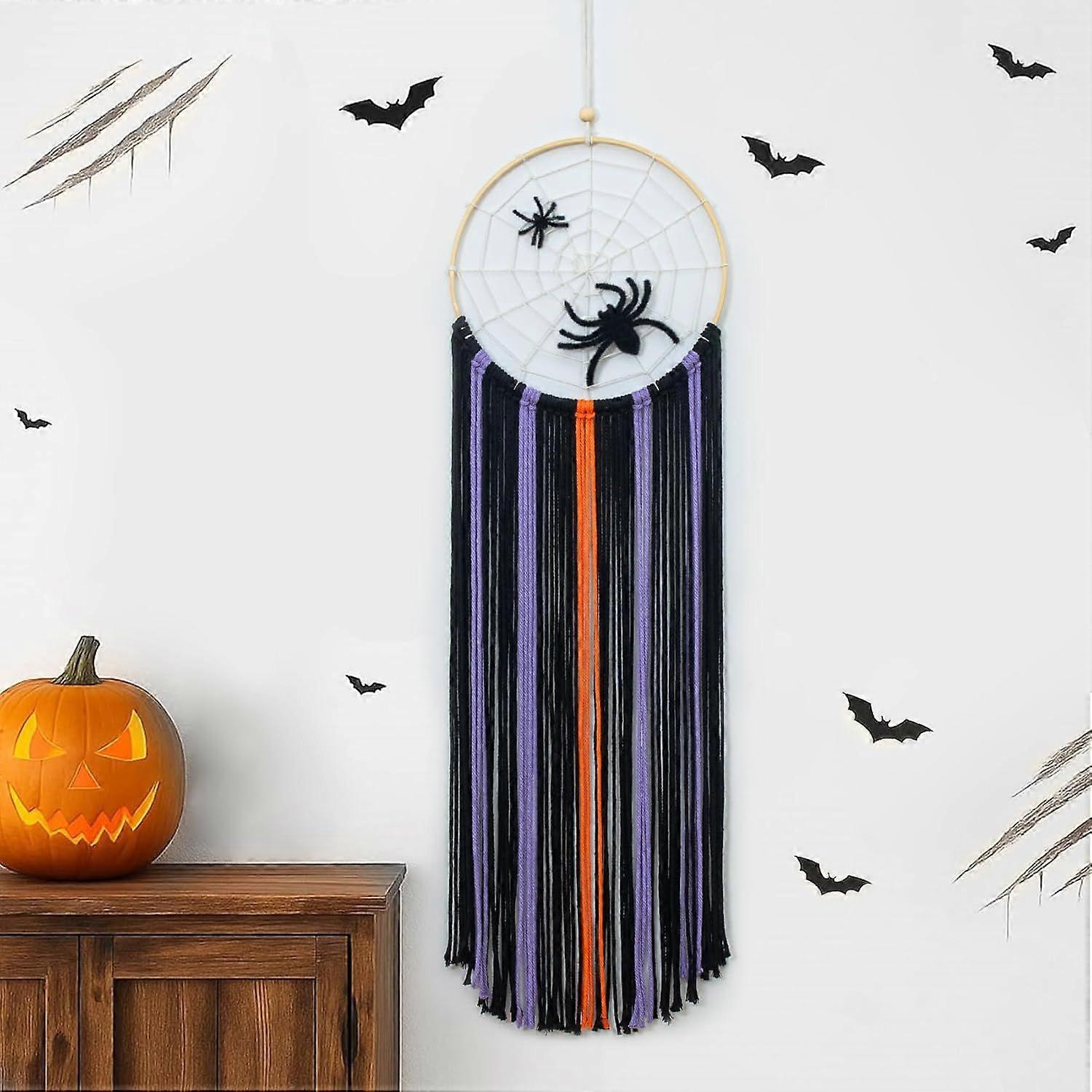 Purple Halloween Black Macrame Wall Hanging Spooky Spider Wall Decor Beige Spider Web Purple Black Woven Tassels Taptry Yarn Macrame Wall Art for Livi