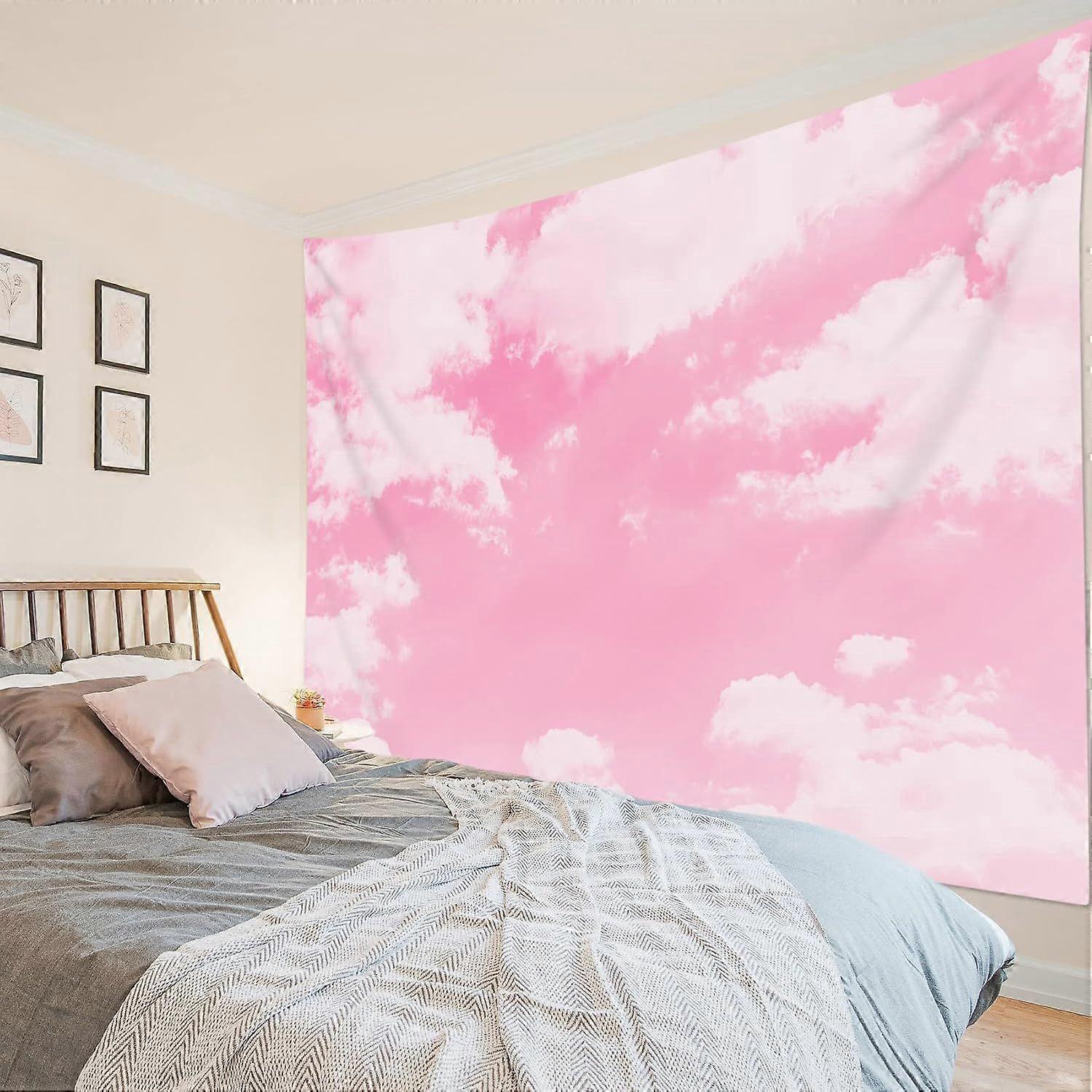 Pastel Pink Cloud Taptry Wall Hanging Pink Sky with White Cloud Wall Taptry for Bedroom Athetic Nature Landscape Taptry for Living Room College Dorm D