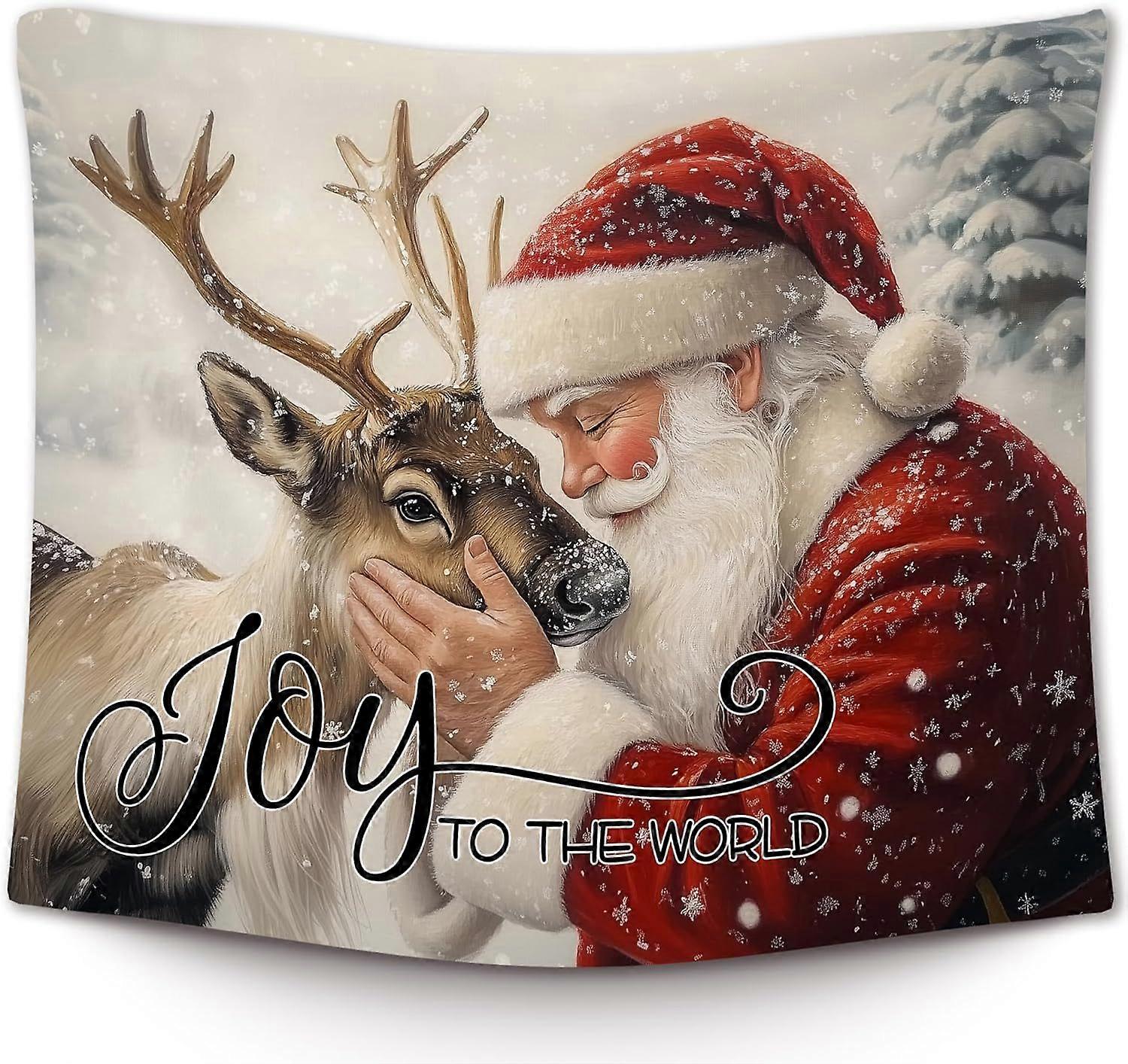 Vintage Christmas Santa Reindeer Wall Taptry, Farmhouse Winter Christmas Wall Taptry Hanging for BedRoom Winter Cozy Xmas Santa Deer TaptriDecor Art f