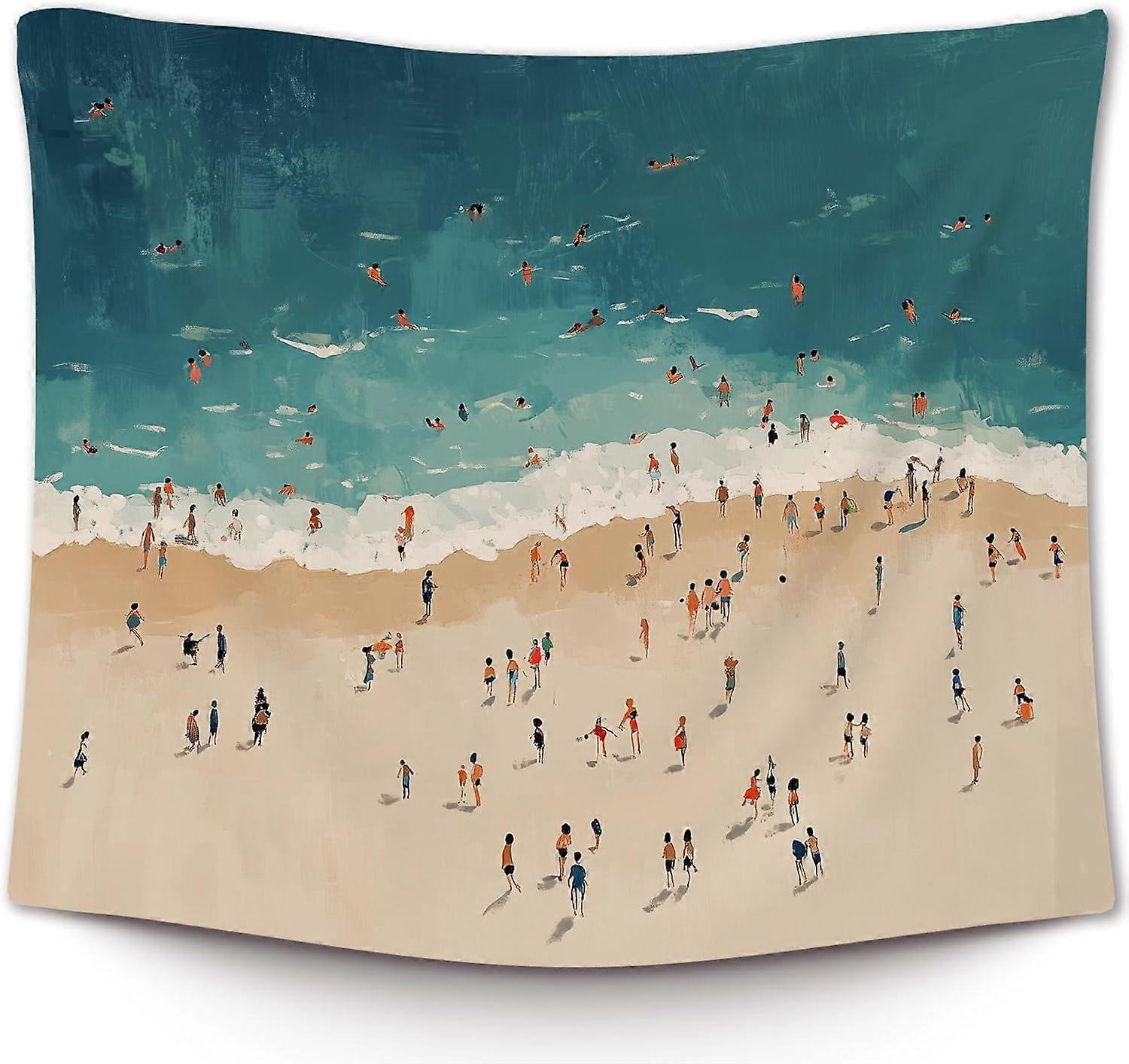 Beach Beachy Coastal Wall Taptry, Vintage Summer Ocean Wall Taptry Hanging for Bedroom Beach House, Tiny People Swimming in Ocean TaptriWall Decor Art
