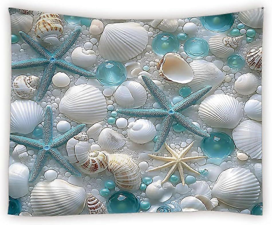 Beach Starfish Seashell Taptry Blue Ocean Nautical Coastal Abstract Marine Life TaptriWall Hanging for Bedroom Living Room Dorm Background Cloth GU 06