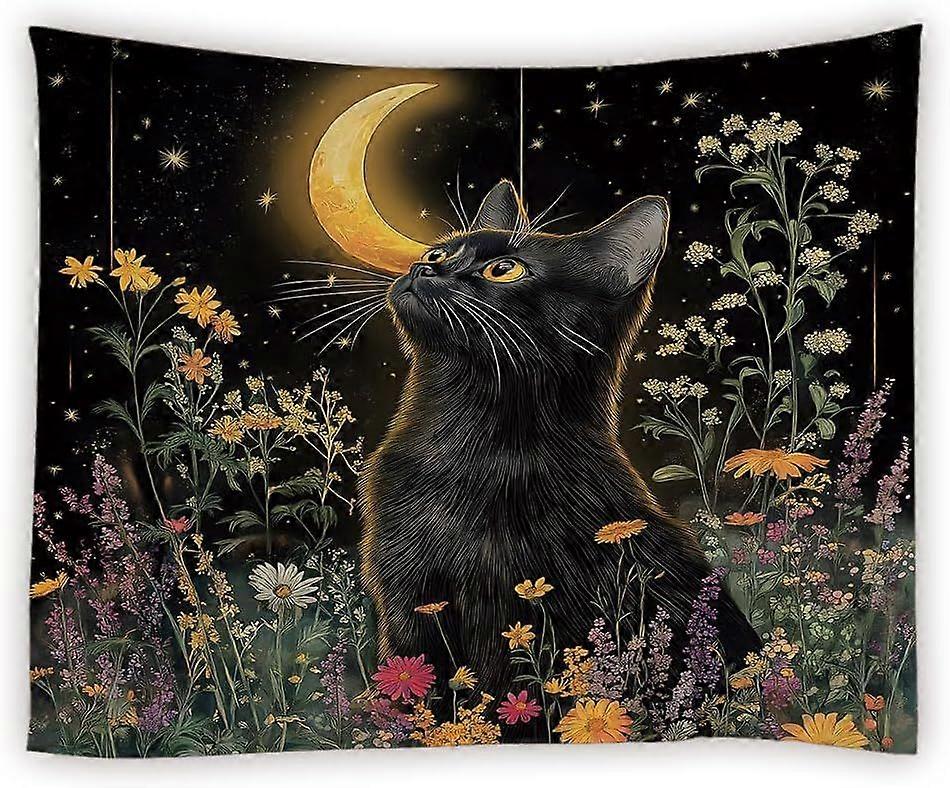 Boho Black Cat Taptry Spring Colorful Floral Moon Starry Sky Modern LeavNature Plant Rustic Wildflower TaptriWall Hanging for Bedroom Living Room Dorm