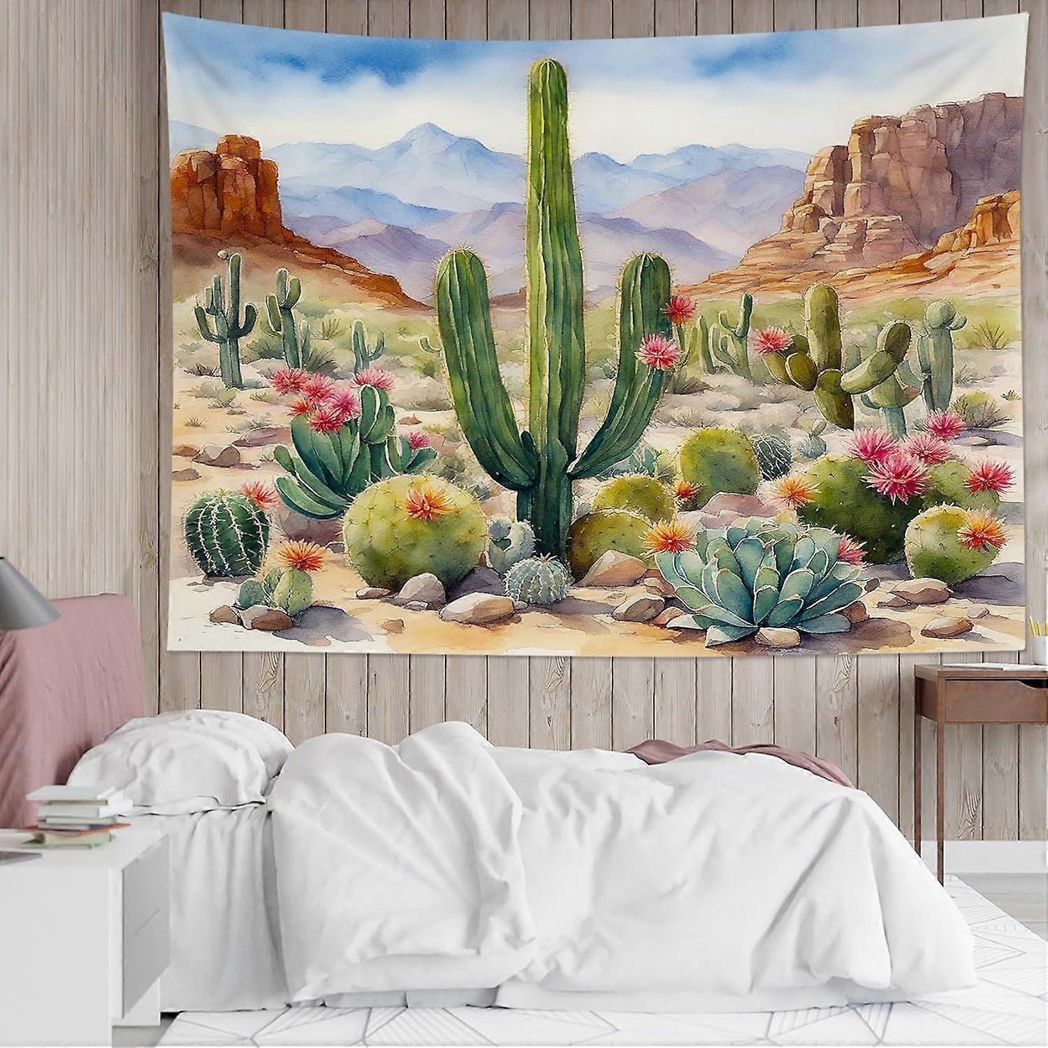 Vintage Green Succulent Plant Taptry Pink Orange Cactus Floral and Dert Plant Taptry Wall Hanging - Blue Mountain Sky Wall Decor for Bedroom Living Ro