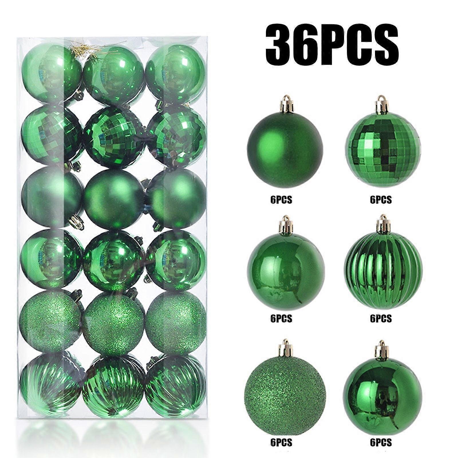 36PCS Christmas Tree Ornaments Set, Red Green White Shatterproof Colored Transparent Balls, Compatible with Christmas Decorations