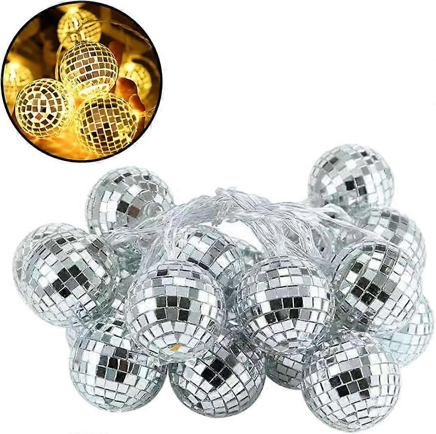 LINLIN LED Disco Ball Mirror String Lights 10ft, Battery Operated Silver Mirror Ball with White Fairy Lights for Christmas, Halloween, Party Decor