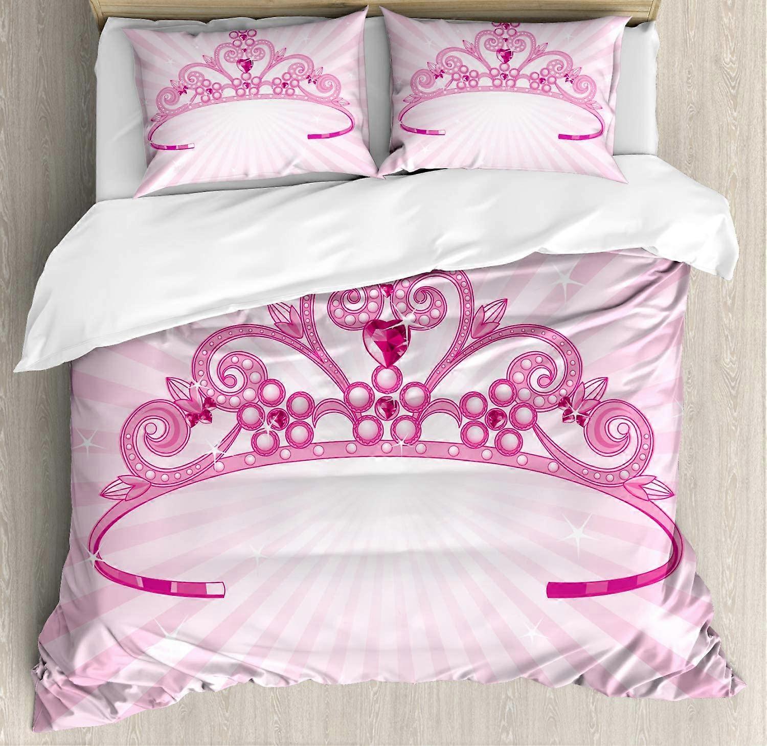 Cartoon Duvet Cover Set, Blush Curving Stripes on Pop Art Background, 3-Piece Bedding with 2 Pillowcases, Fuchsia Pink