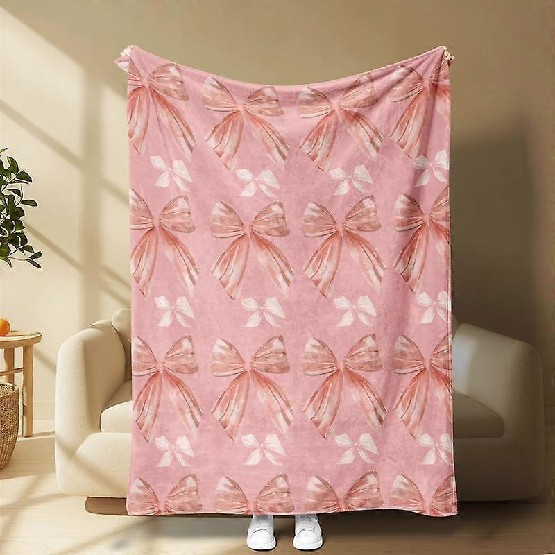 Bow Blanket Soft Flannel Lightweight Throw for Kids Teens Girls Bedding Spring Home Decor Air Conditioned Room Library Office Camping