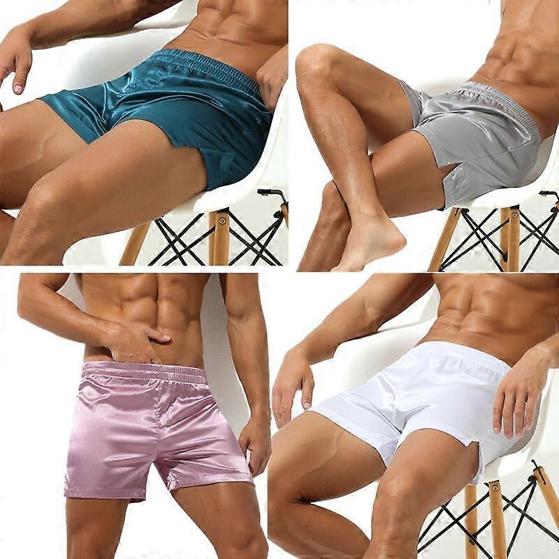 Men Satin Pajamas Shorts Silk Sleepwear Boxer Shorts Pjs Bottom Pants Homewear