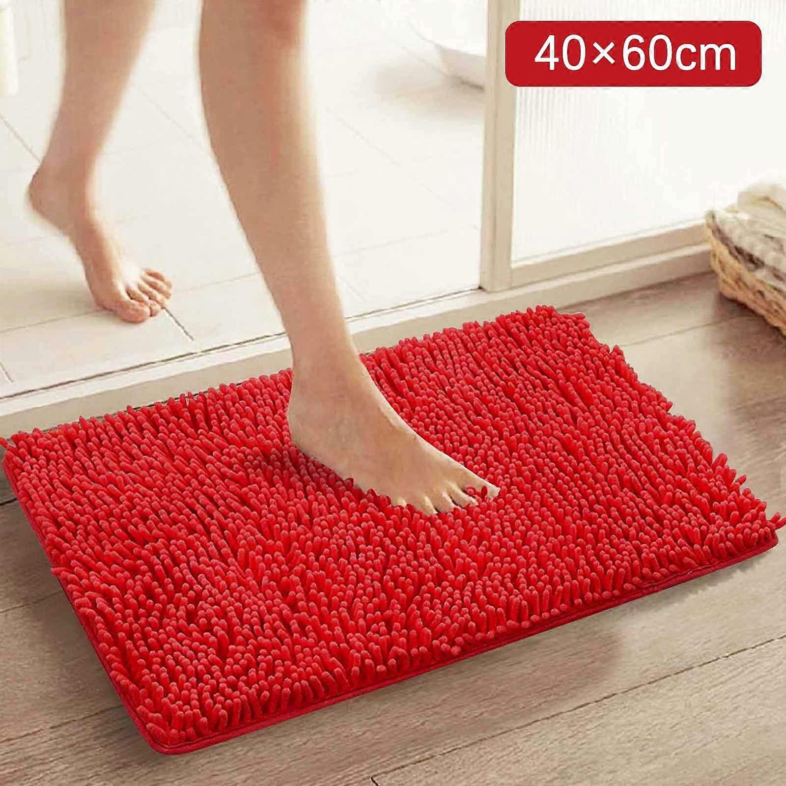 Bright Red Soft Furry Bathroom Mat - Non-Slip, Durable, Thickened, Machine Washable Rug for Bedroom/Bathroom (1Pc)