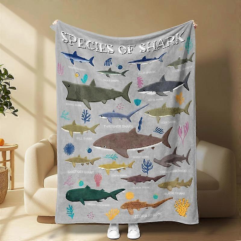 Soft Flannel Blanket with Shark Species Pattern, Perfect for Kids' Room, Sofa, Bed, Ideal for Reading Together, Halloween Gift Recommendatio